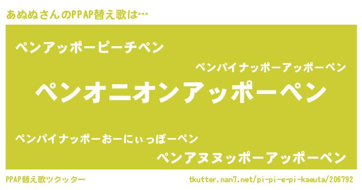 | 2回繰り返すあだ名 | 『たぽたぽ』『あぬあぬ』『ああぬぬ』 |
