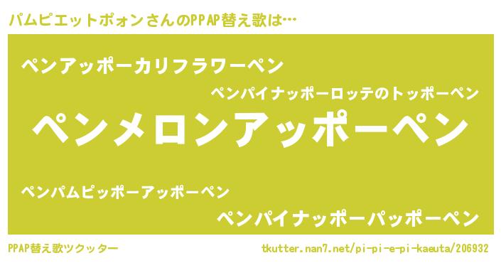| 欧米人風あだ名 | 『マイケルパムピエットポォン』 |