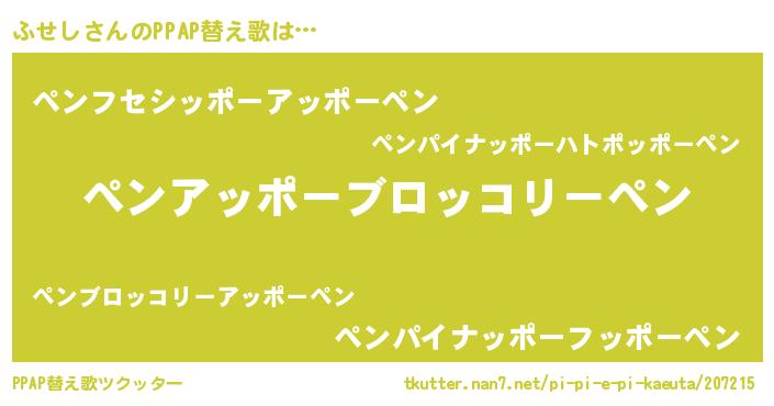 | ピコ太郎風あだ名 | 『ピフ十郎』『フセ三郎』『ピコフ郎』 |