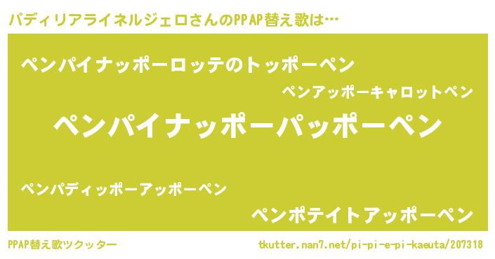 | ピコ太郎風あだ名 | 『ピコパ郎』『パパ太郎』『パコ四郎』 |