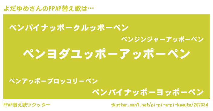 ピコ太郎風あだ名 | 『ヨダ四郎』『ヨヨ太郎』『ピコヨ郎』 |