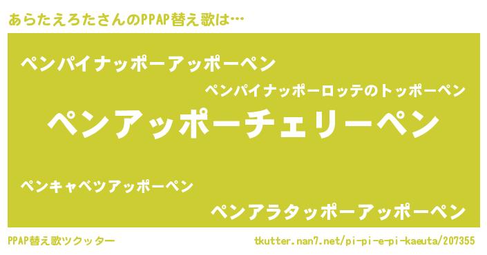 | ピコ太郎風あだ名 | 『ピア一郎』『ピコア郎』『アラ太郎』 |