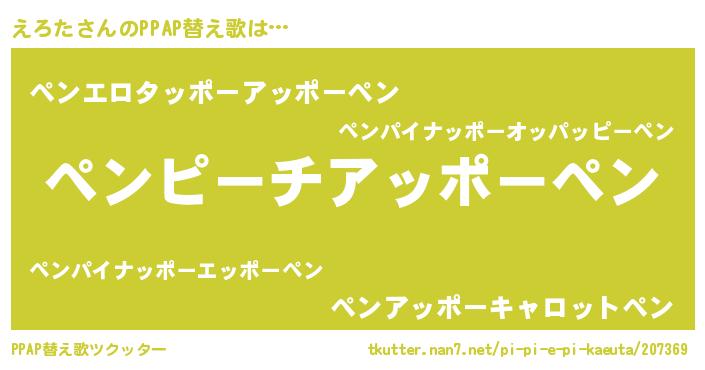 | ピコ太郎風あだ名 | 『エコ太郎』『エロ十郎』『ピエ八郎』 |