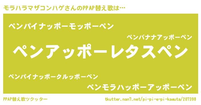 | ピコ太郎風あだ名 | 『ピモ四郎』『ピコモ郎』『モラ四郎』 |