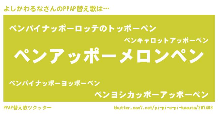 | 欧米人風あだ名 | 『よしかわるな・ステッグマイヤー』 |