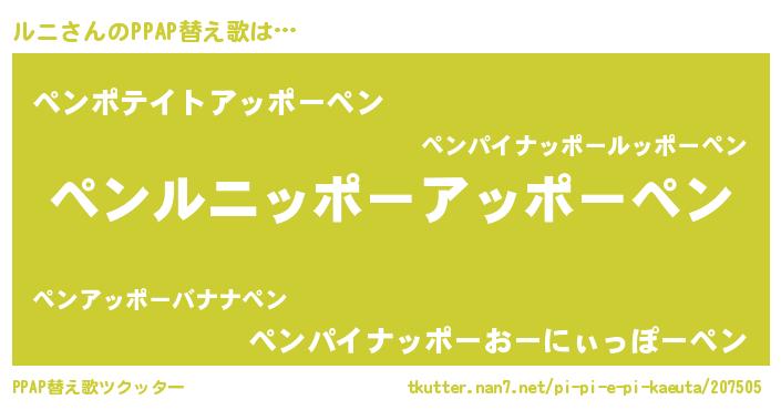| ピコ太郎風あだ名 | 『ルニ六郎』『ルコ四郎』『ルル太郎』 |