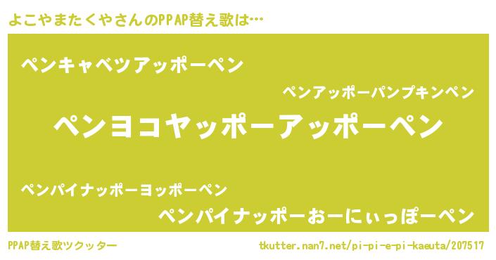 | ピコ太郎風あだ名 | 『ヨコ三郎』『ヨコ一郎』『ヨヨ太郎』 |