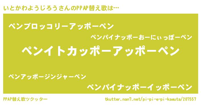 | 胡散臭い通販商品みたいなあだ名 | 『信頼と実績のサプリメント…その名も「いとかわようじろう」』 |