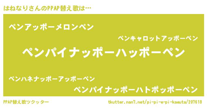 | ピコ太郎風あだ名 | 『ピコハ郎』『ピハ太郎』『ハハ太郎』 |
