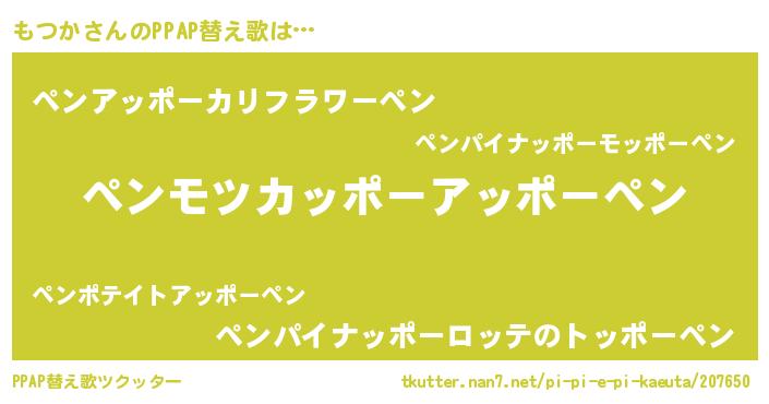 | ピコ太郎風あだ名 | 『モツ五郎』『ピモ史郎』『モモ太郎』 |
