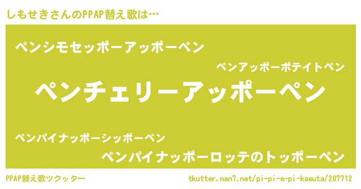 | 意味不明あだ名 | 『住所不定無職しもせき(11歳)』 |