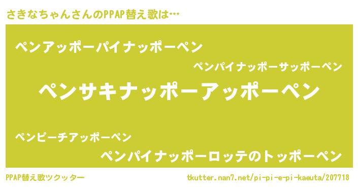 | ピコ太郎風あだ名 | 『サキ六郎』『ピサ八郎』『ササ太郎』 |
