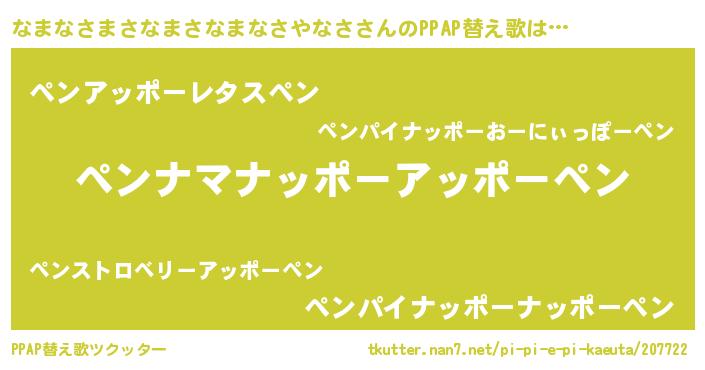 | 欧米人風あだ名 | 『ケンブリッジなまなさまさなまさなまなさやなさ』 |