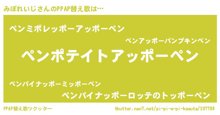 | ヒーロー風カッコイイあだ名 | 『仮面ミポダー』『スーパーミポレイジ』 |