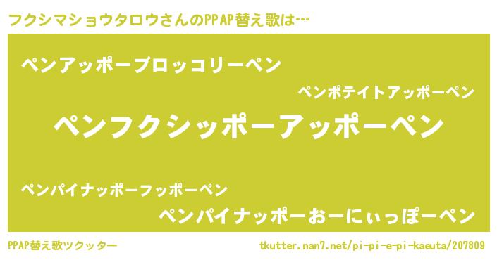 | 欧米人風あだ名 | 『ウサインフクシマショウタロウ』 |
