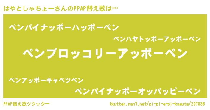 | 意味不明あだ名 | 『住所不定無職はやとしゃちょー(98歳)』 |