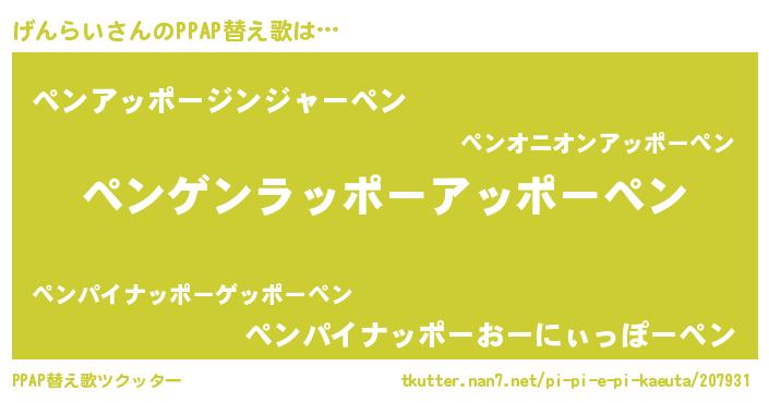 | ピコ太郎風あだ名 | 『ゲン三郎』『ピゲ十郎』『ゲゲ太郎』 |