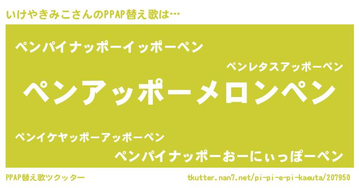 | 肩書あだ名 | 『いけやきみこ船長』『いけやきみこ中将』 |