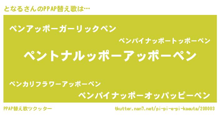 | ピコ太郎風あだ名 | 『トナ史郎』『ピト十郎』『トト太郎』 |