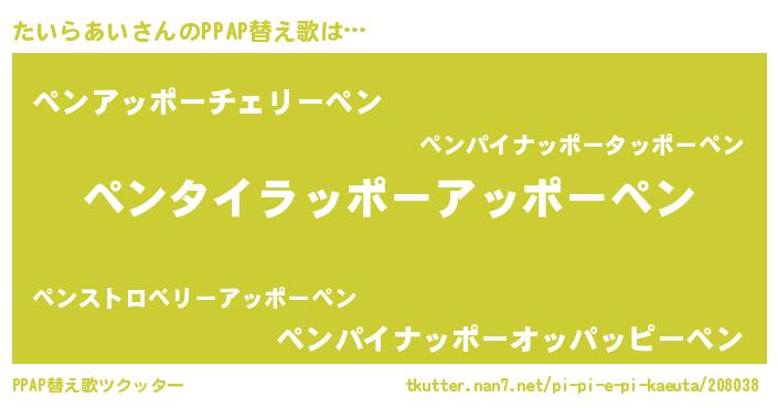 | 欧米人風あだ名 | 『たいらあい・ステッグマイヤー』 |