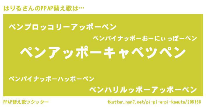 | ピコ太郎風あだ名 | 『ピハ四郎』『ハコ八郎』『ハリ十郎』 |
