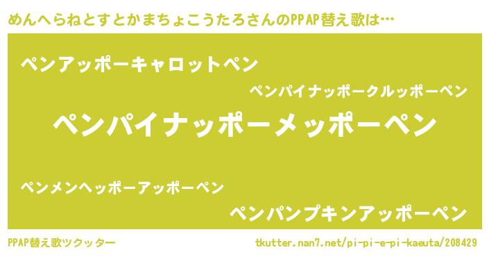 | 欧米人風あだ名 | 『ケンブリッジめんへらねとすとかまちょこうたろ』 |