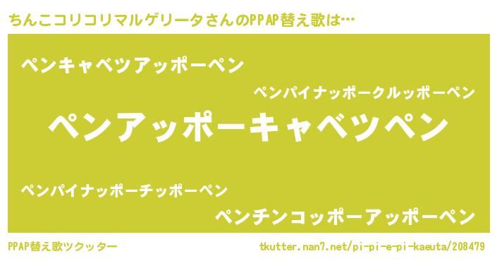 | 欧米人風あだ名 | 『ちんこコリコリマルゲリータクリステル』 |