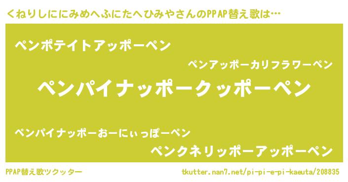 | ヘコむあだ名 | 『くねりしににみめへふにたへひみや(笑)』 |