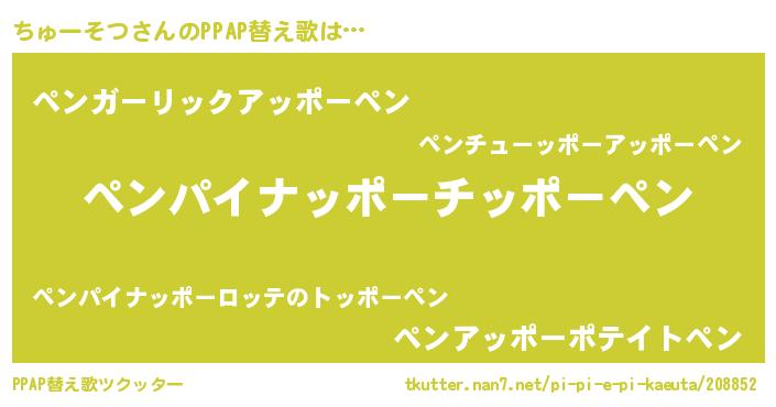 | ピコ太郎風あだ名 | 『ピコチ郎』『チコ八郎』『ピチ一郎』 |