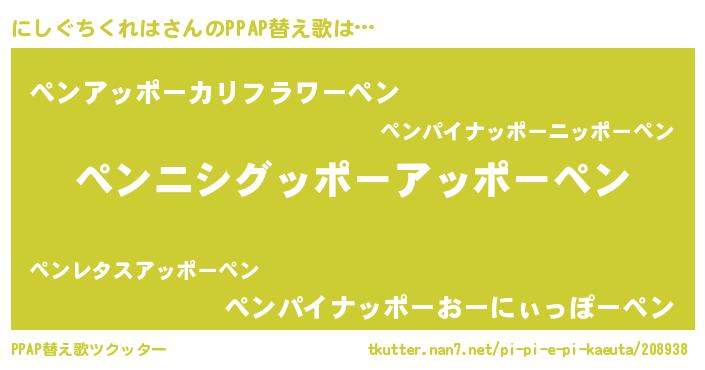 | 欧米人風あだ名 | 『ウサインにしぐちくれは』 |