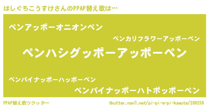 | ピコ太郎風あだ名 | 『ハシ二郎』『ピハ一郎』『ハハ太郎』 |