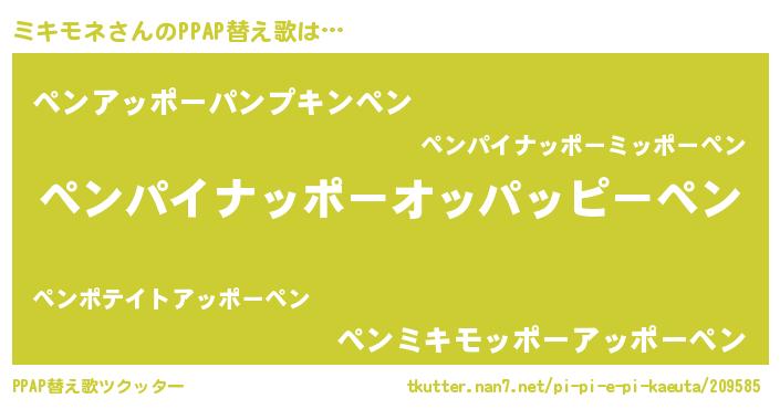 | 男性向けラノベタイトル風あだ名 | 『Re:ミキモネから始める異世界生活』 |