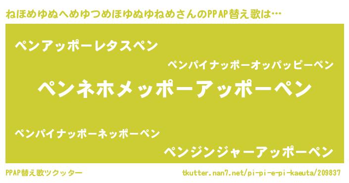 | ピコ太郎風あだ名 | 『ネホ太郎』『ピネ史郎』『ネコ五郎』 |