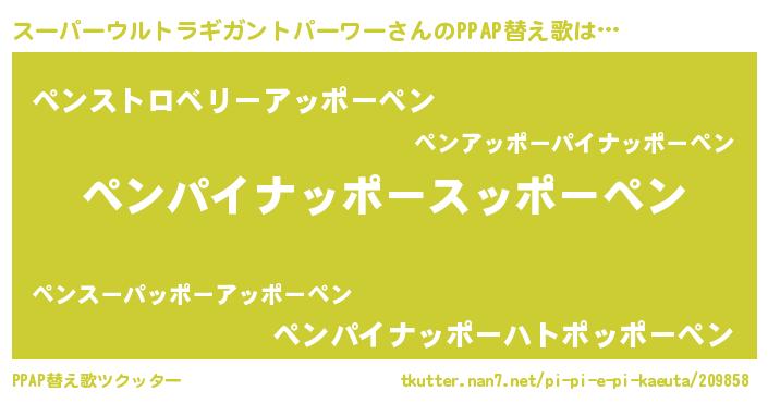 | 男性向けラノベタイトル風あだ名 | 『スーパーウルトラギガントパーワーという概念が存在しない退屈な世界 』 |