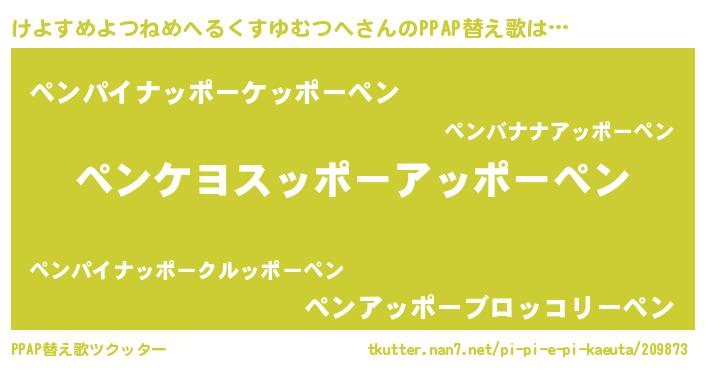 | 料理風あだ名 | 『けよすめよつねめへるくすゆむつへごはん』 |
