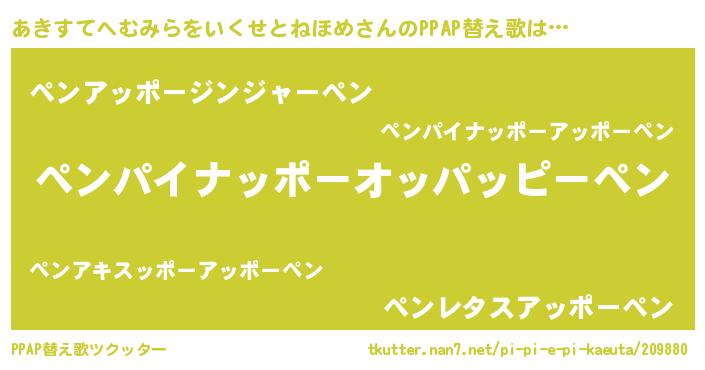 | 恥ずかしいあだ名 | 『アキステヘムミラヲイクセトネホメデラックス』 |