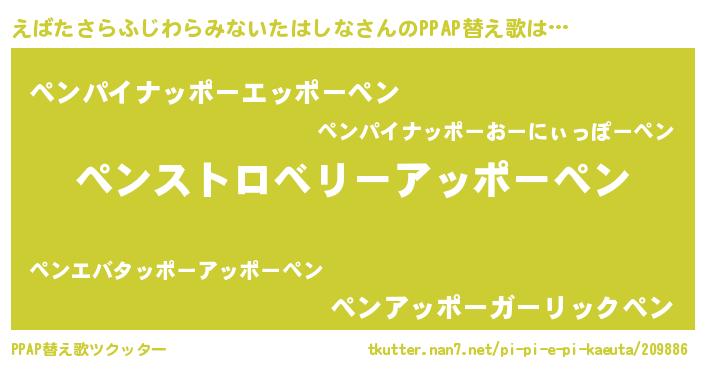 | 料理風あだ名 | 『ネギたっぷりえばたさらふじわらみないたはしなの南蛮漬け』 |