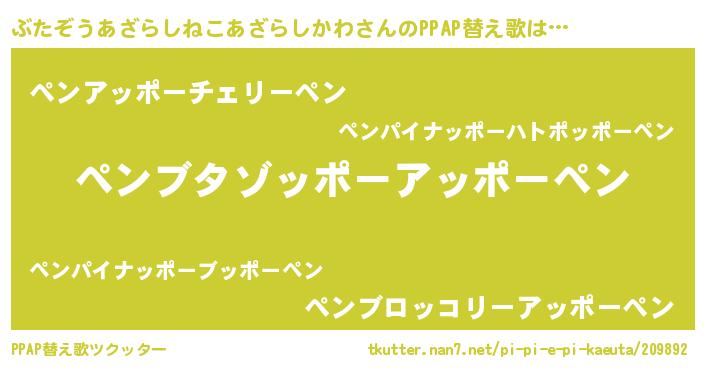 | ピコ太郎風あだ名 | 『ブタ三郎』『ピブ一郎』『ブコ三郎』 |