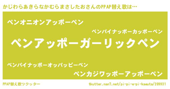 | 肩書あだ名 | 『かじわらあきらなかむらまさしたお国家主席』 |