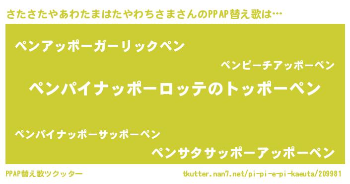 | ピコ太郎風あだ名 | 『ササ太郎』『ピサ八郎』『サタ二郎』 |