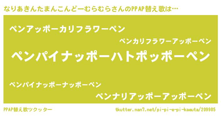 | 欧米人風あだ名 | 『トリンドルなりあきんたまんこんどーむらむら』 |