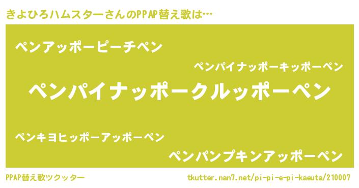 | 男性向けラノベタイトル風あだ名 | 『おまえをオタクにしてやるから、俺をきよひろハムスターにしてくれ! 』 |