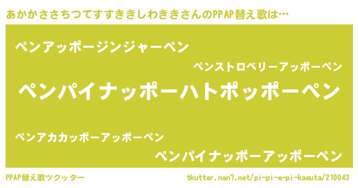 | 意味不明あだ名 | 『住所不定無職あかかささちつてすすききしわきき(6歳)』 |