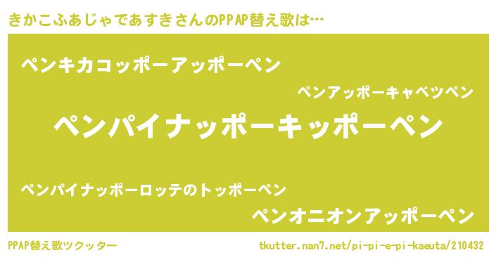 | 欧米人風あだ名 | 『トリンドルきかこふあじゃであすき』 |