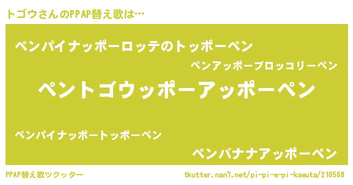 | ピコ太郎風あだ名 | 『トゴ太郎』『トト太郎』『トコ三郎』 |
