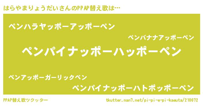 | ピコ太郎風あだ名 | 『ピコハ郎』『ハラ太郎』『ハハ太郎』 |