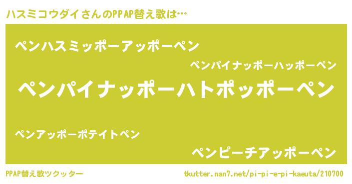| ピコ太郎風あだ名 | 『ハハ太郎』『ハス四郎』『ハコ二郎』 |