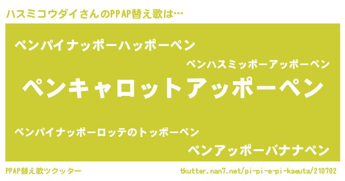 | ピコ太郎風あだ名 | 『ハコ八郎』『ピコハ郎』『ピハ三郎』 |