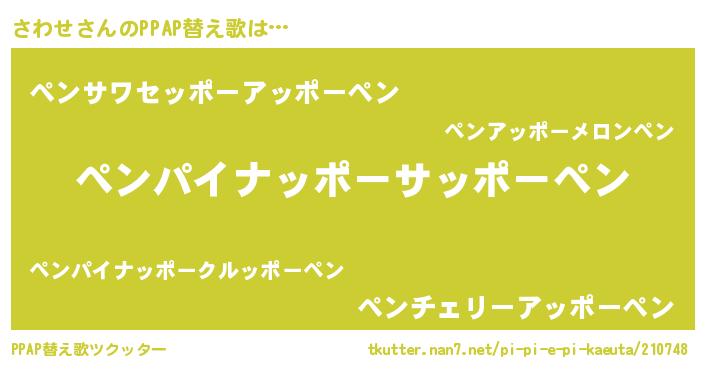 | 欧米人風あだ名 | 『アンジェラ・さわせ』『ウサインさわせ』 |
