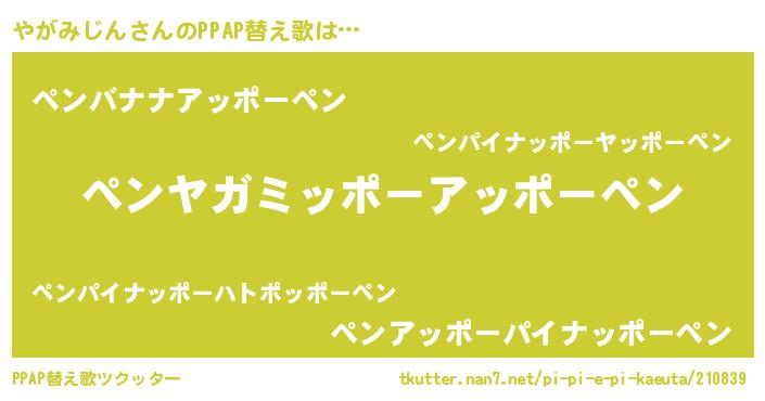 | ピコ太郎風あだ名 | 『ヤガ二郎』『ヤコ次郎』『ピヤ六郎』 |